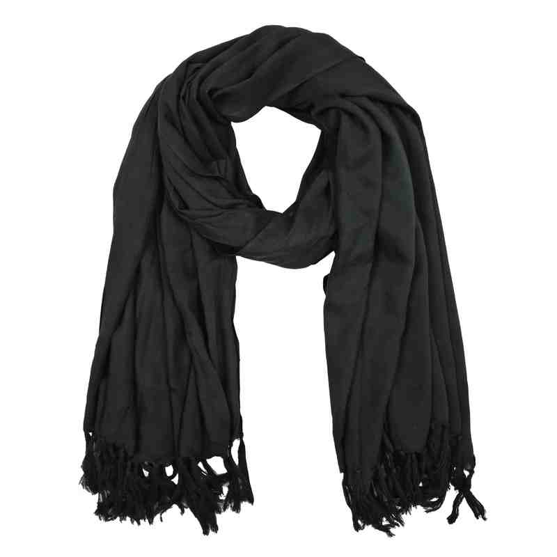 Black Plain Dye - Hawaiian Bali Sarong Pareo Batik Beach Swim Wrap Cover up with Fringe - 180 x 115cm